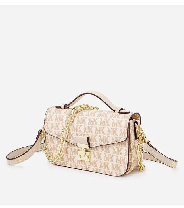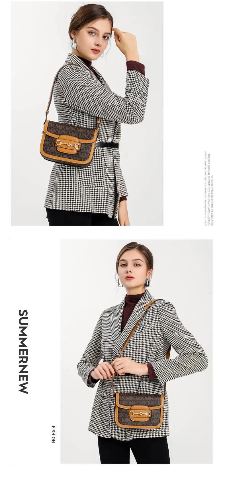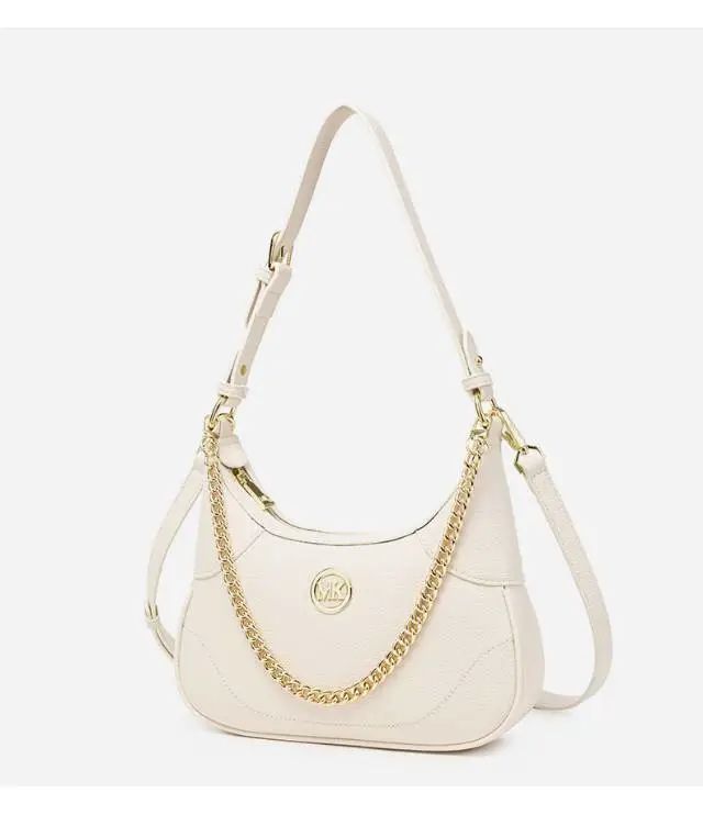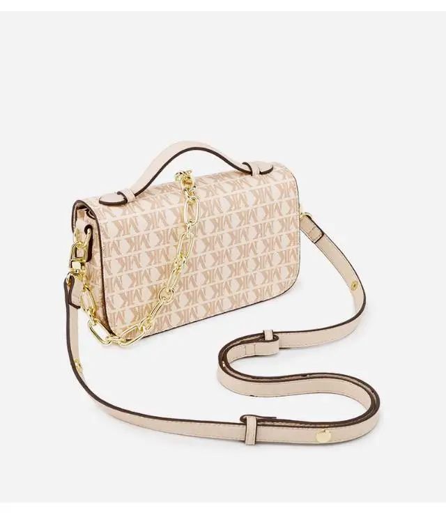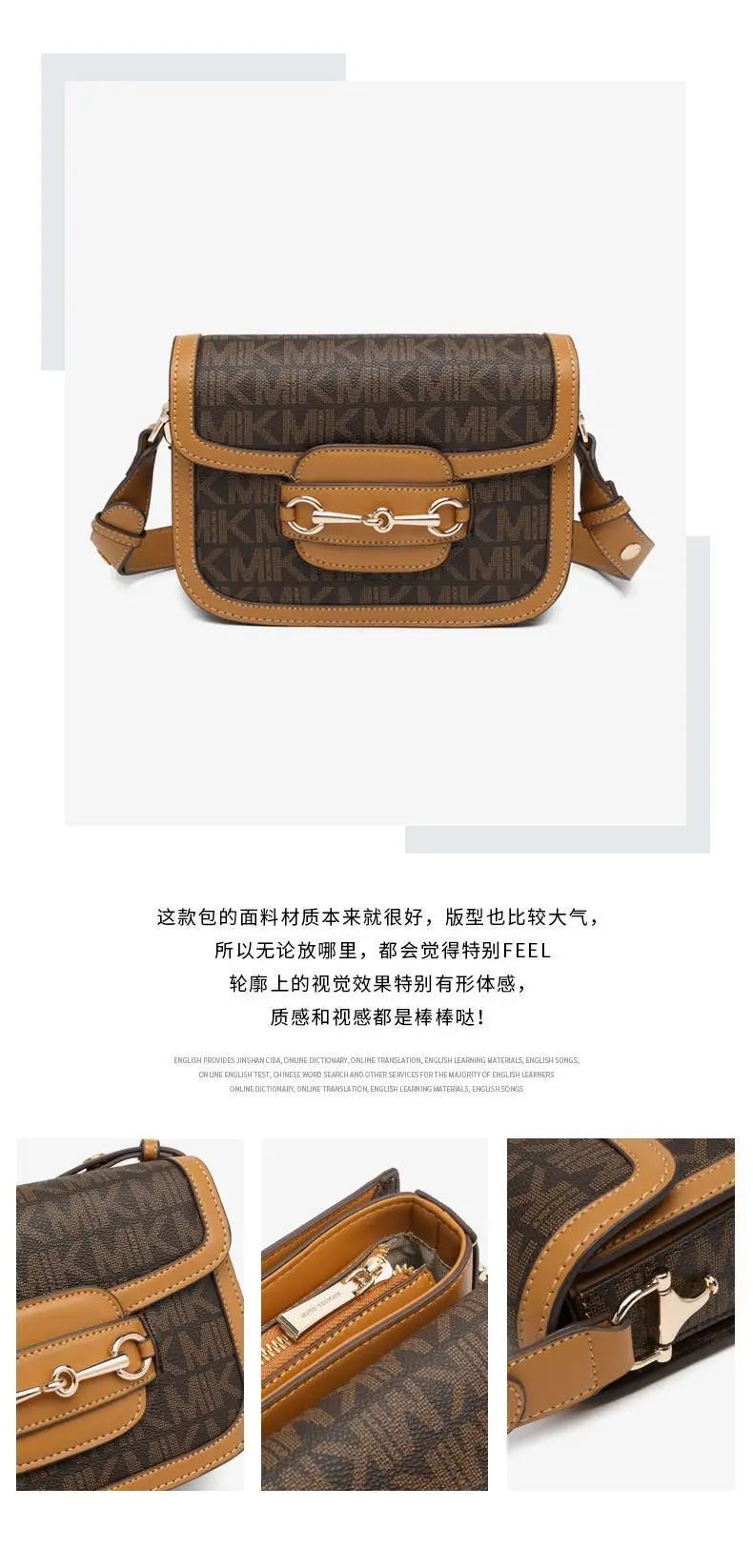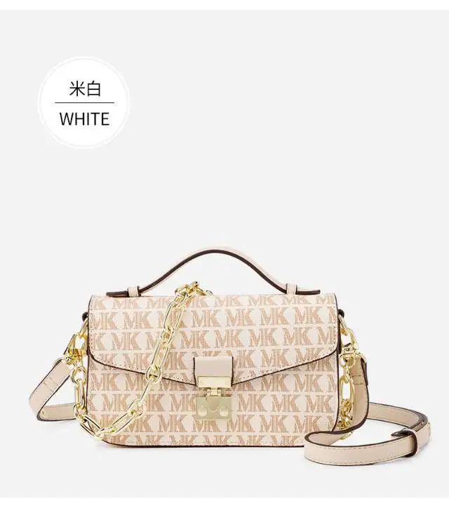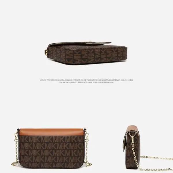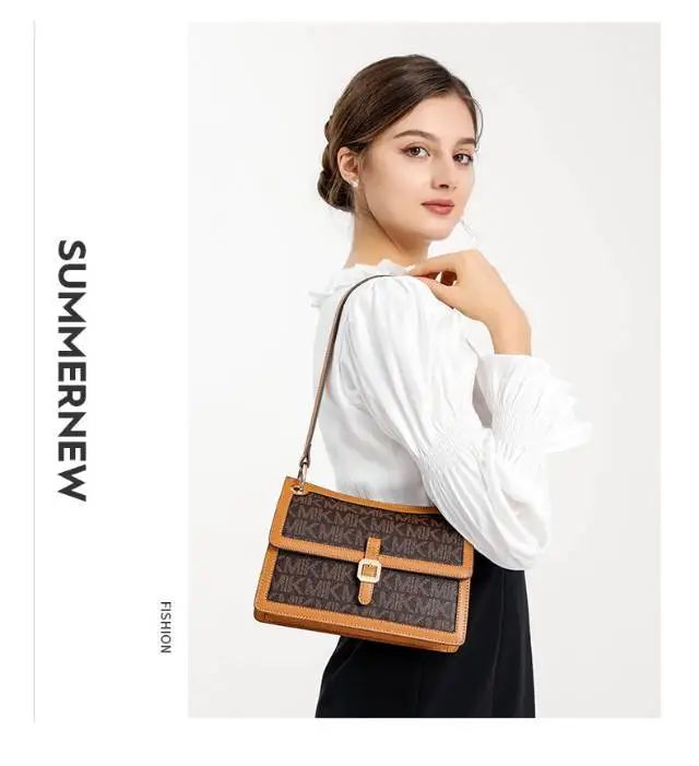 推品12 【品牌】:MICAREL KMOR(英国MK) 【货号】:MK8901 【品名】:白领高级感单肩包 【颜色】:棕色/米白 【材质】:PVC/牛皮 【肩带】: 可拆卸 肩带约110cm 【尺寸】:20cm*8*14 【风格】:极简,复古 【款式】:单肩包/斜跨
