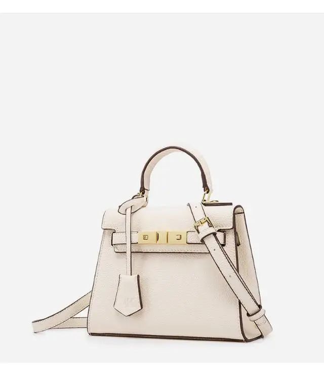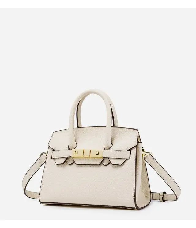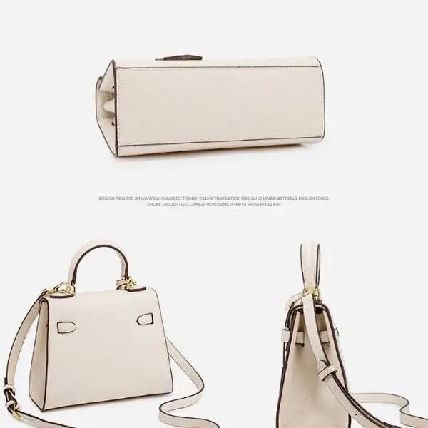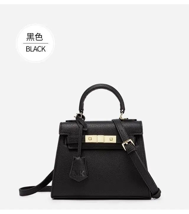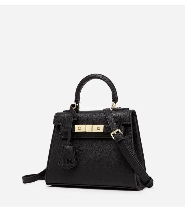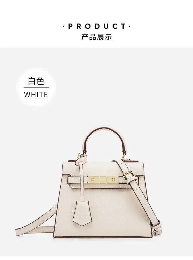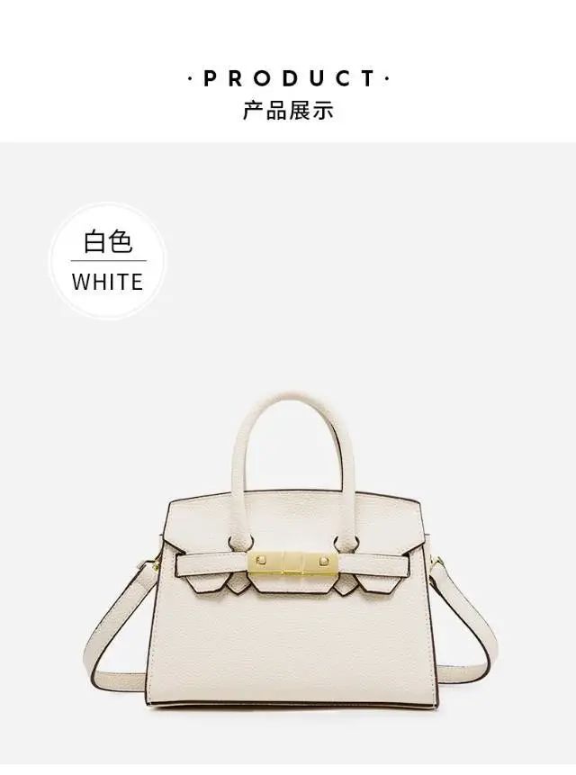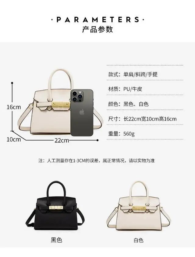 推品5 【品牌】:MICARELKMOR(英国MK)MK8980 【品名】:荔枝纹铂金包手提单肩斜挎包 【颜色】:黑色/白色 【材质】:PU/牛皮 【尺寸】:22*10*16cm 【风格】:极简,复古 【款式】:单肩/手提/斜挎。肩带可拆卸