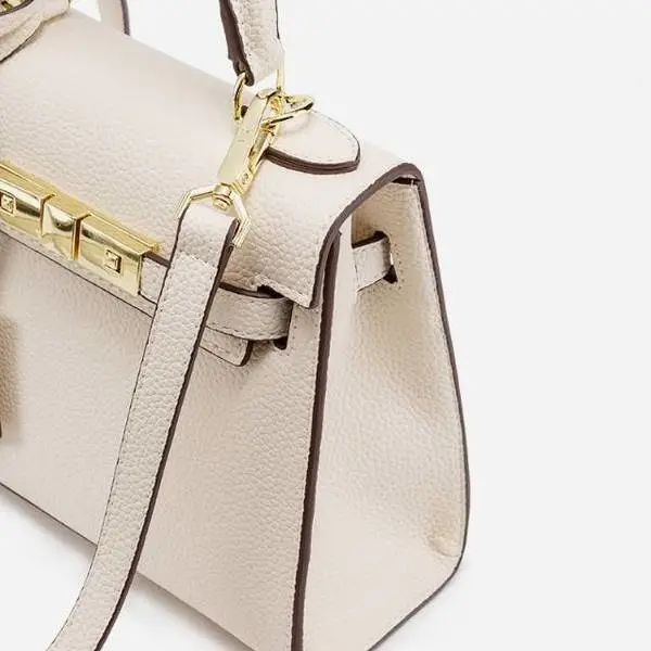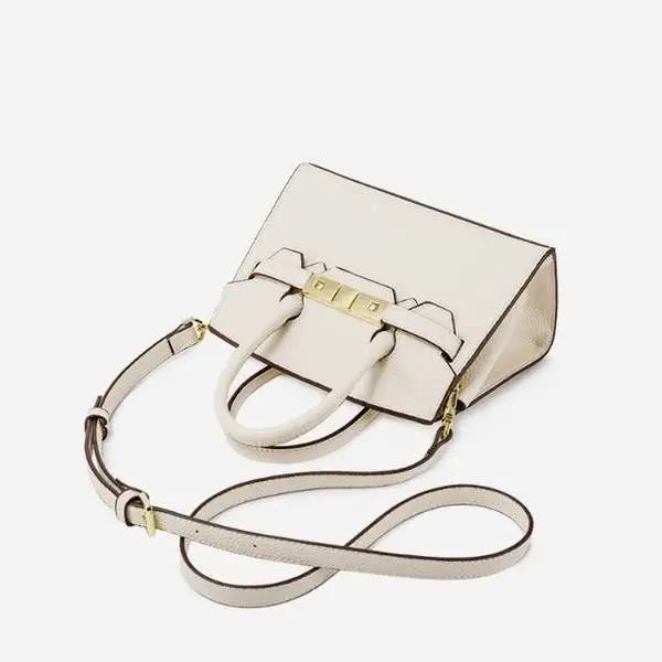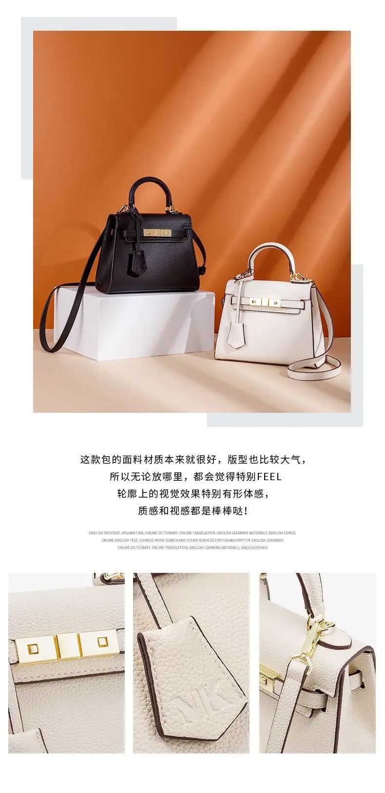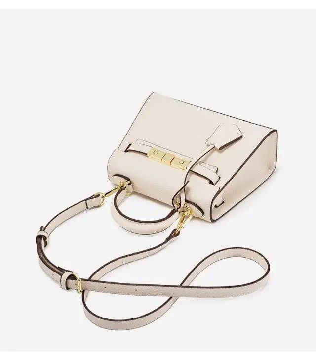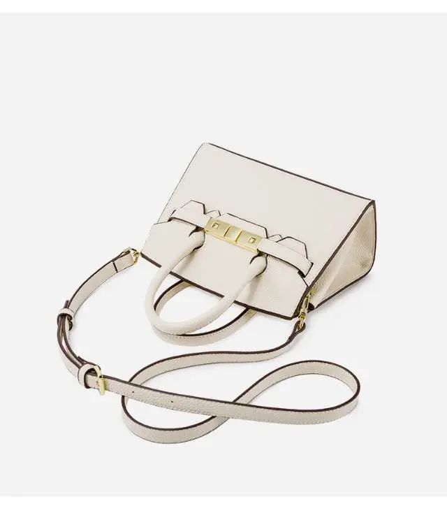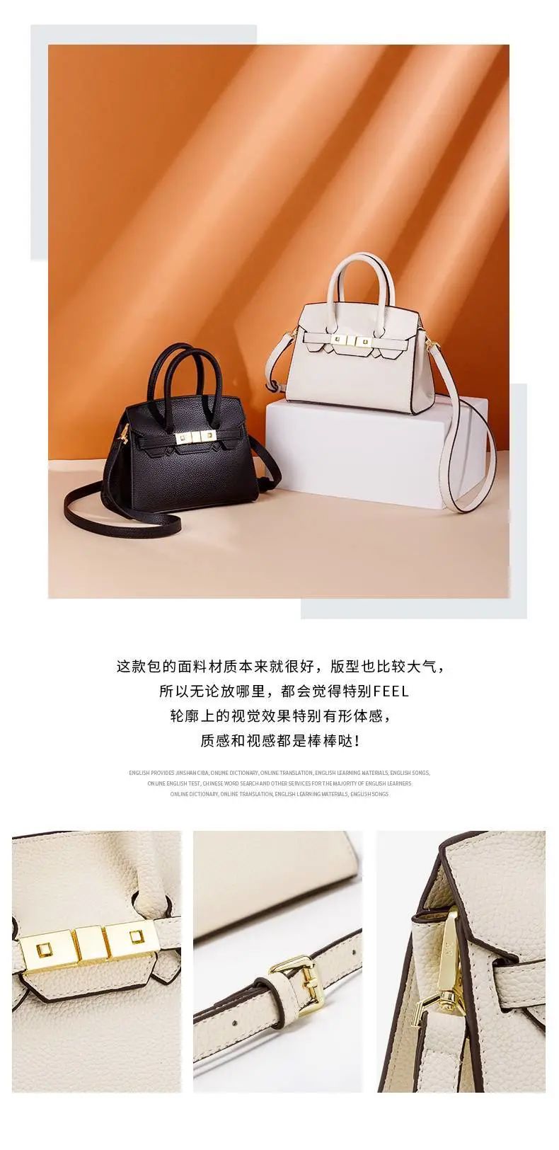 推品5 【品牌】:MICARELKMOR(英国MK)MK8980 【品名】:荔枝纹铂金包手提单肩斜挎包 【颜色】:黑色/白色 【材质】:PU/牛皮 【尺寸】:22*10*16cm 【风格】:极简,复古 【款式】:单肩/手提/斜挎。肩带可拆卸