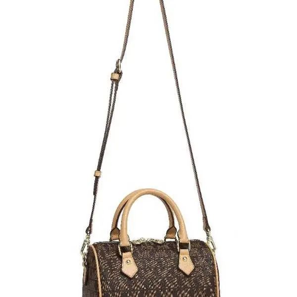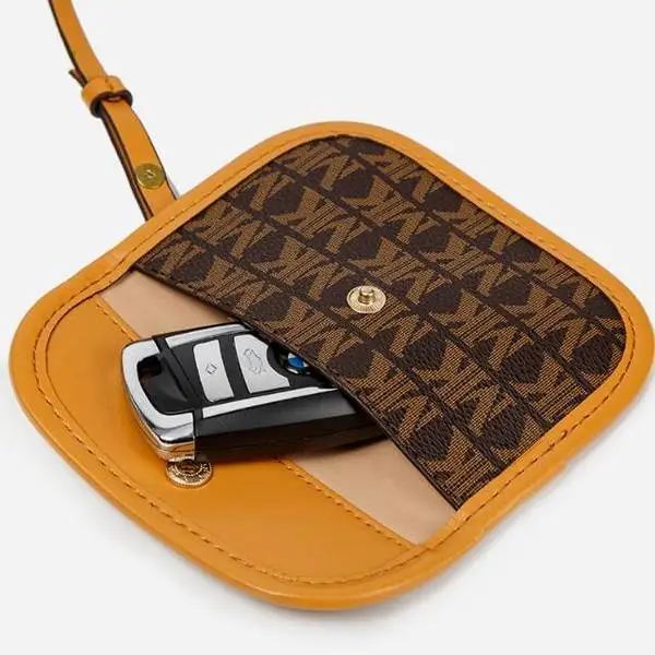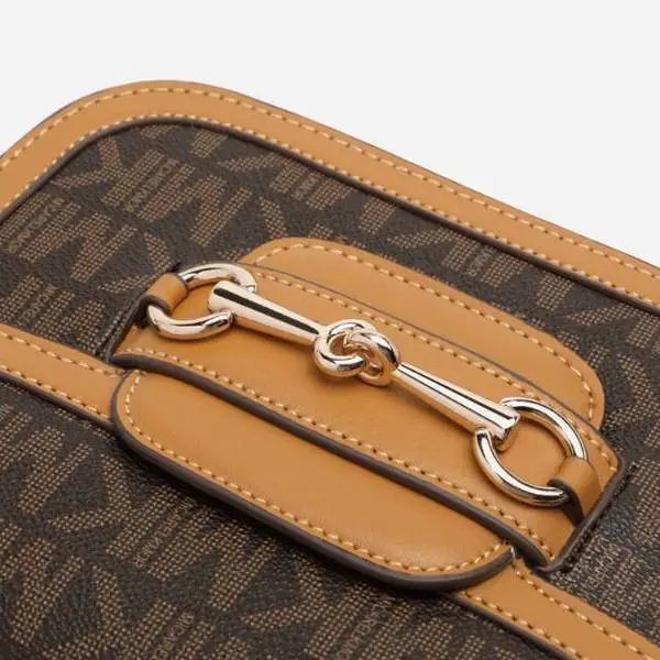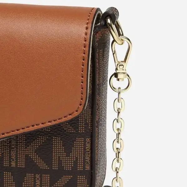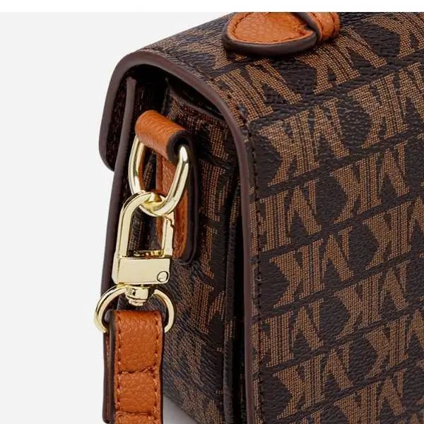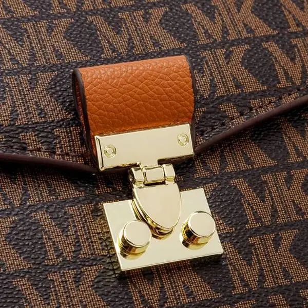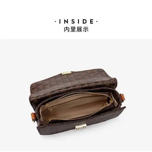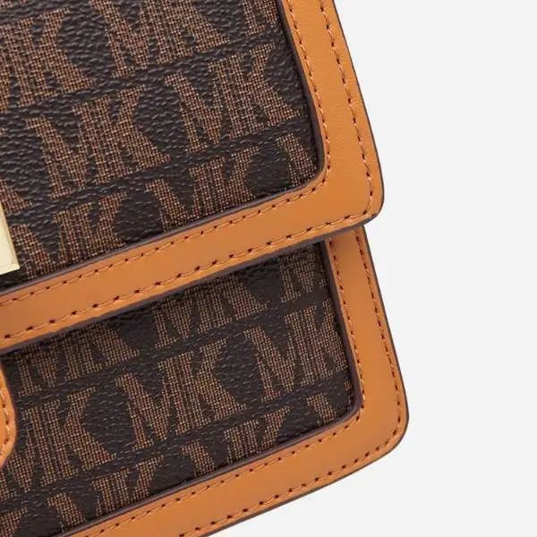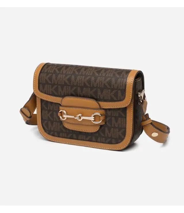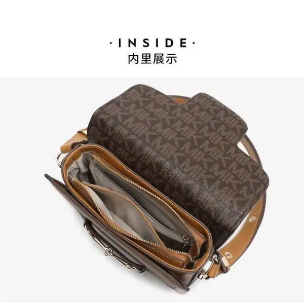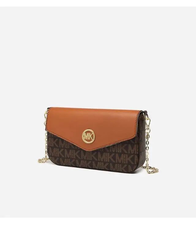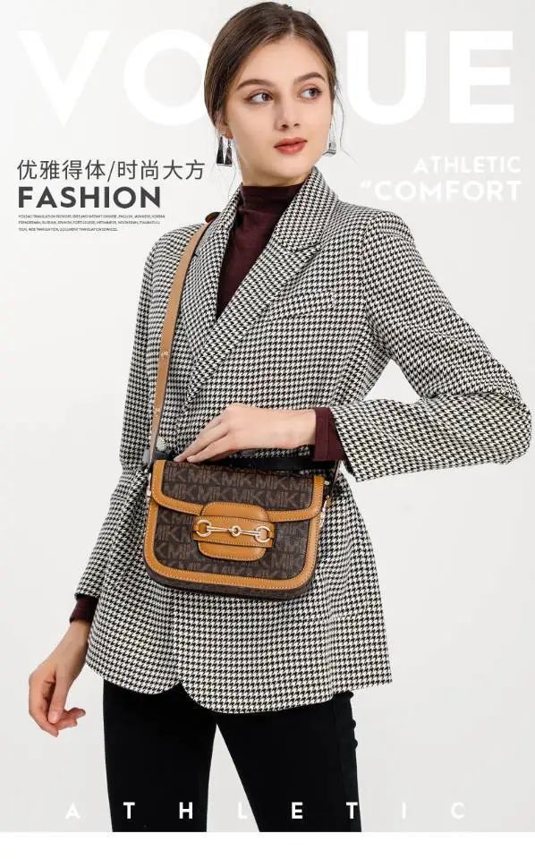 推品3 【品牌】:MICARELKMOR(英国MK)MK8978 【品名】:单肩斜挎包邮差包 【颜色】:咖色/米白 【材质】:PVC/牛皮 【尺寸】:21*7*13cm 【风格】:极简,复古 【款式】:单肩包。可拆卸肩带。