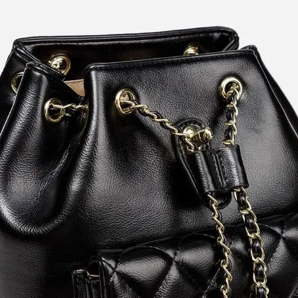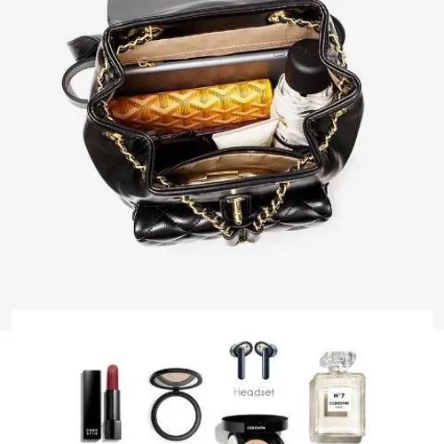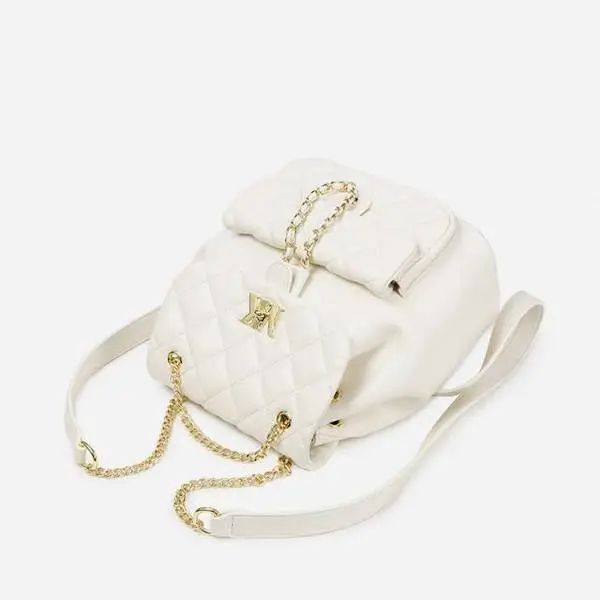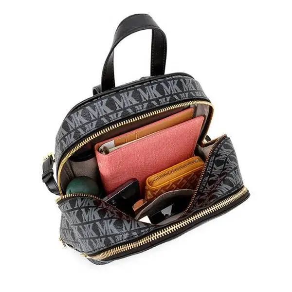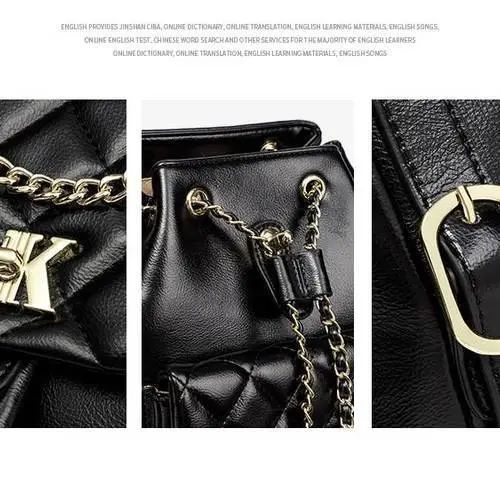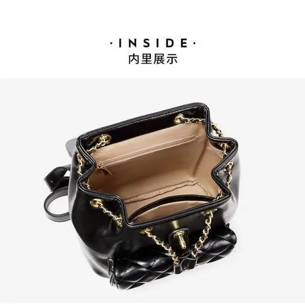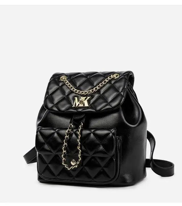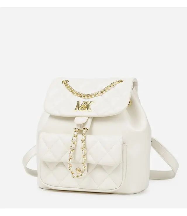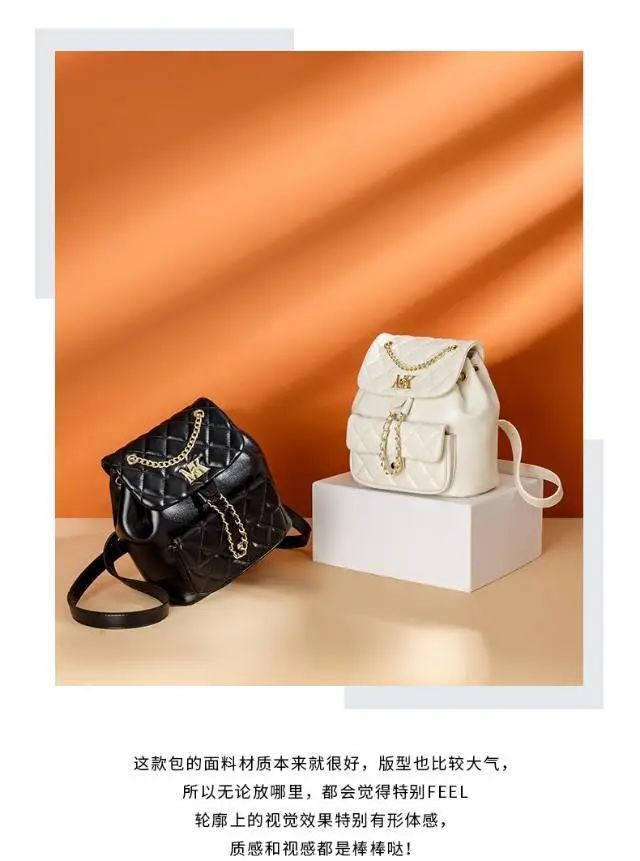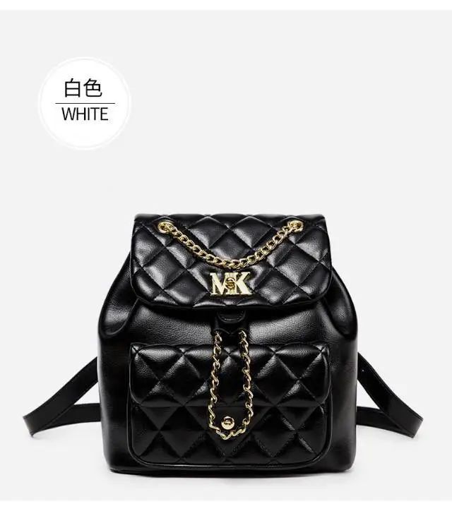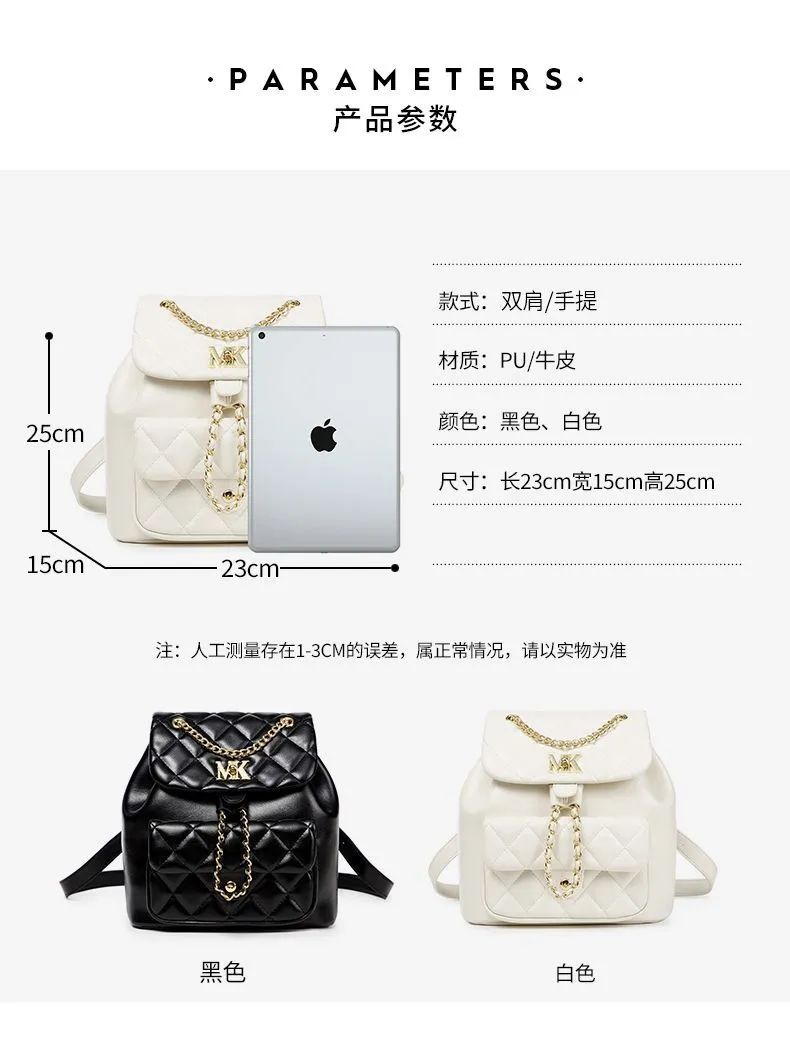 推品8 【品牌】:MICARELKMOR(英国MK) 【货号】:MK8983 【品名】:菱格双肩背包 【颜色】:黑色/白色 【材质】:PU/牛皮 【尺寸】:23*15*25cm 【风格】:极简,复古 【款式】:双肩包