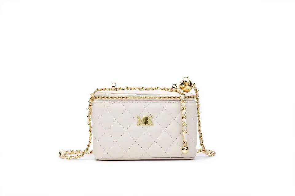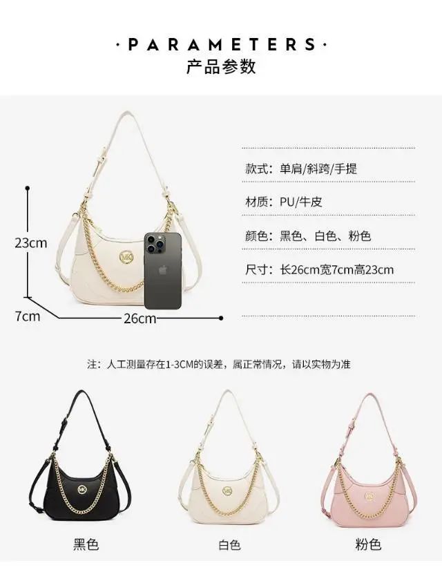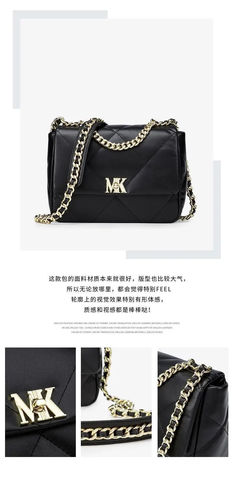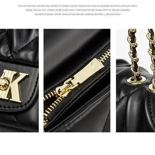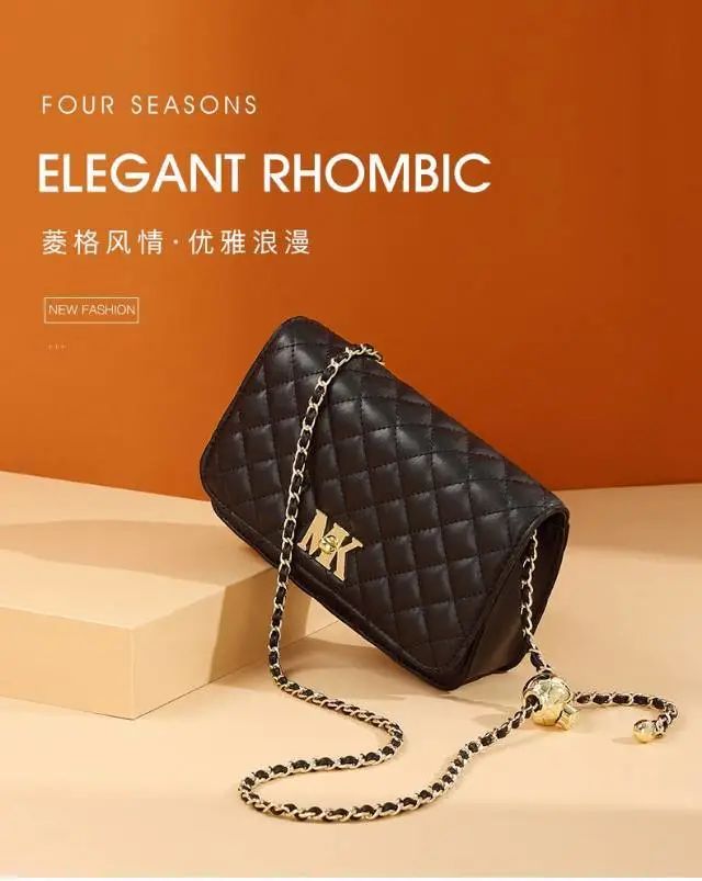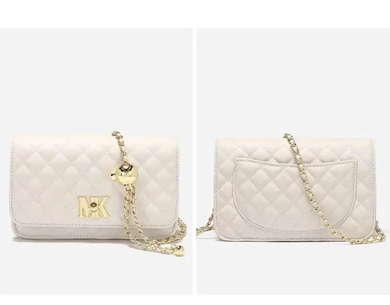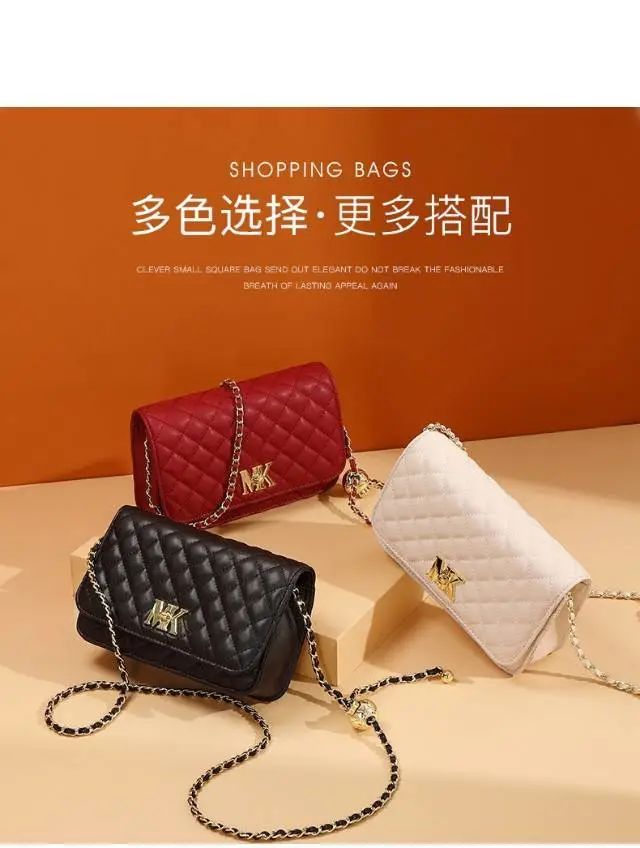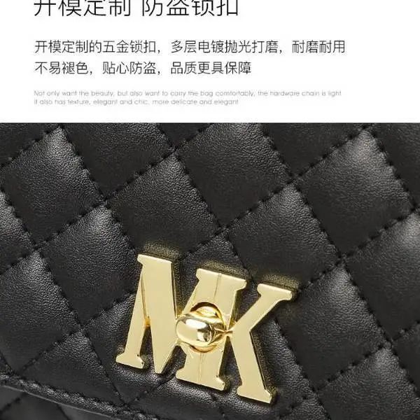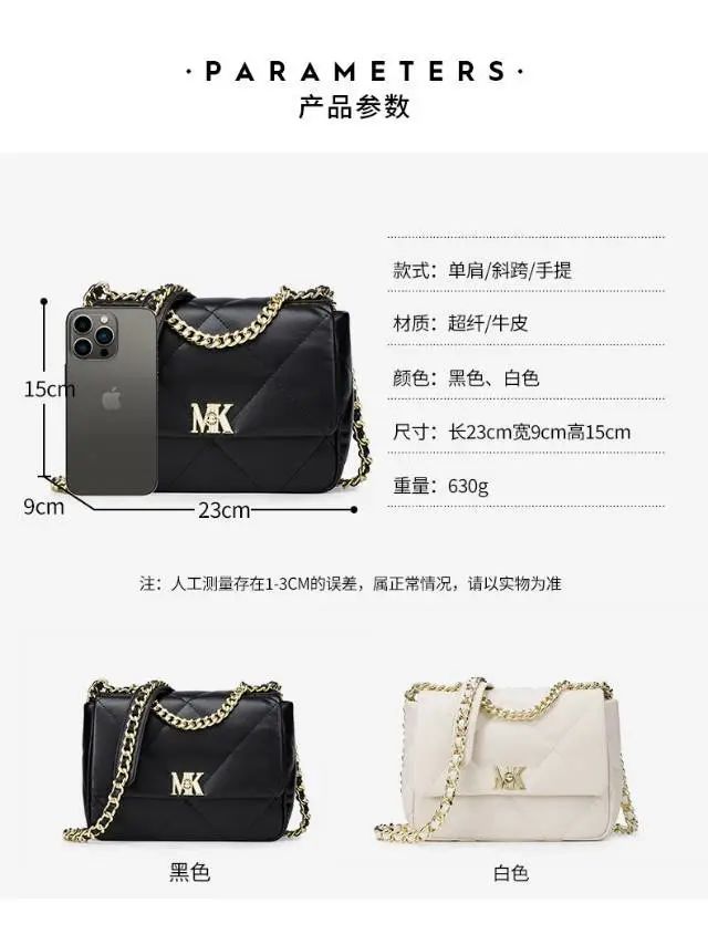 推品11 【品牌】:MICAREL KMOR(英国MK) 【货号】:MK8378 【品名】:时尚链条菱格单肩包包 【颜色】:黑色/米白/酒红 【材质】:超纤皮革/牛皮 【尺寸】:20.5CM*5.5CM*13CM 【风格】:极简,复古 【款式】:单肩包/斜跨