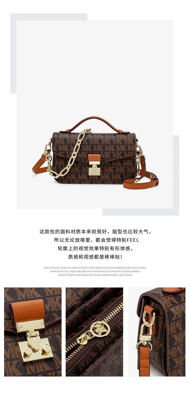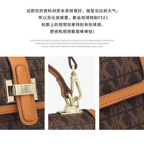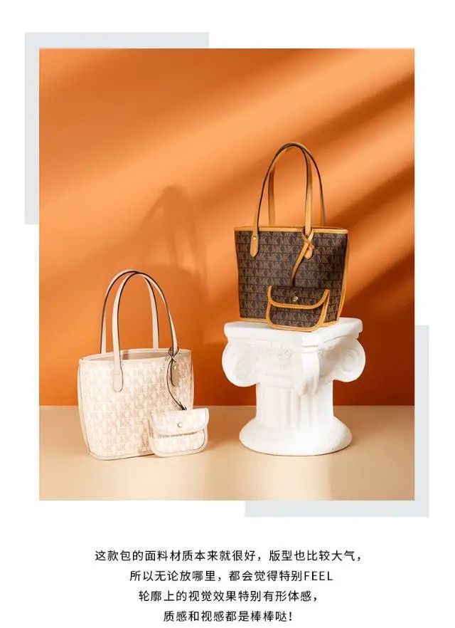 推品18 【品名】:MK8940复古经典手提包(爆款) 【货号】:MK8940 【颜色】:棕色/米白 【材质】:PVC/牛皮 【尺寸】:20cm*13.5cm*15cm 【肩带】:手提 【风格】:极简,复古 【款式】:单肩包/斜跨/手提