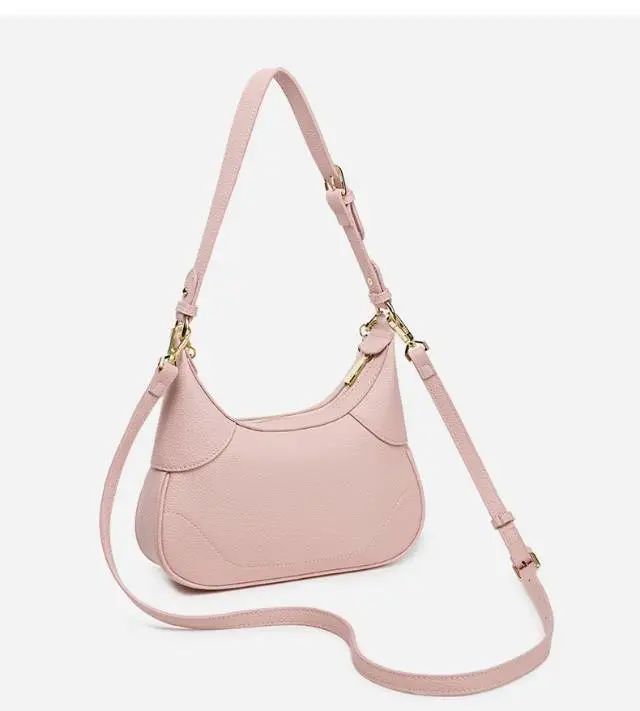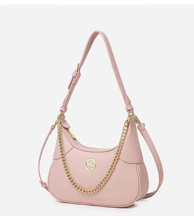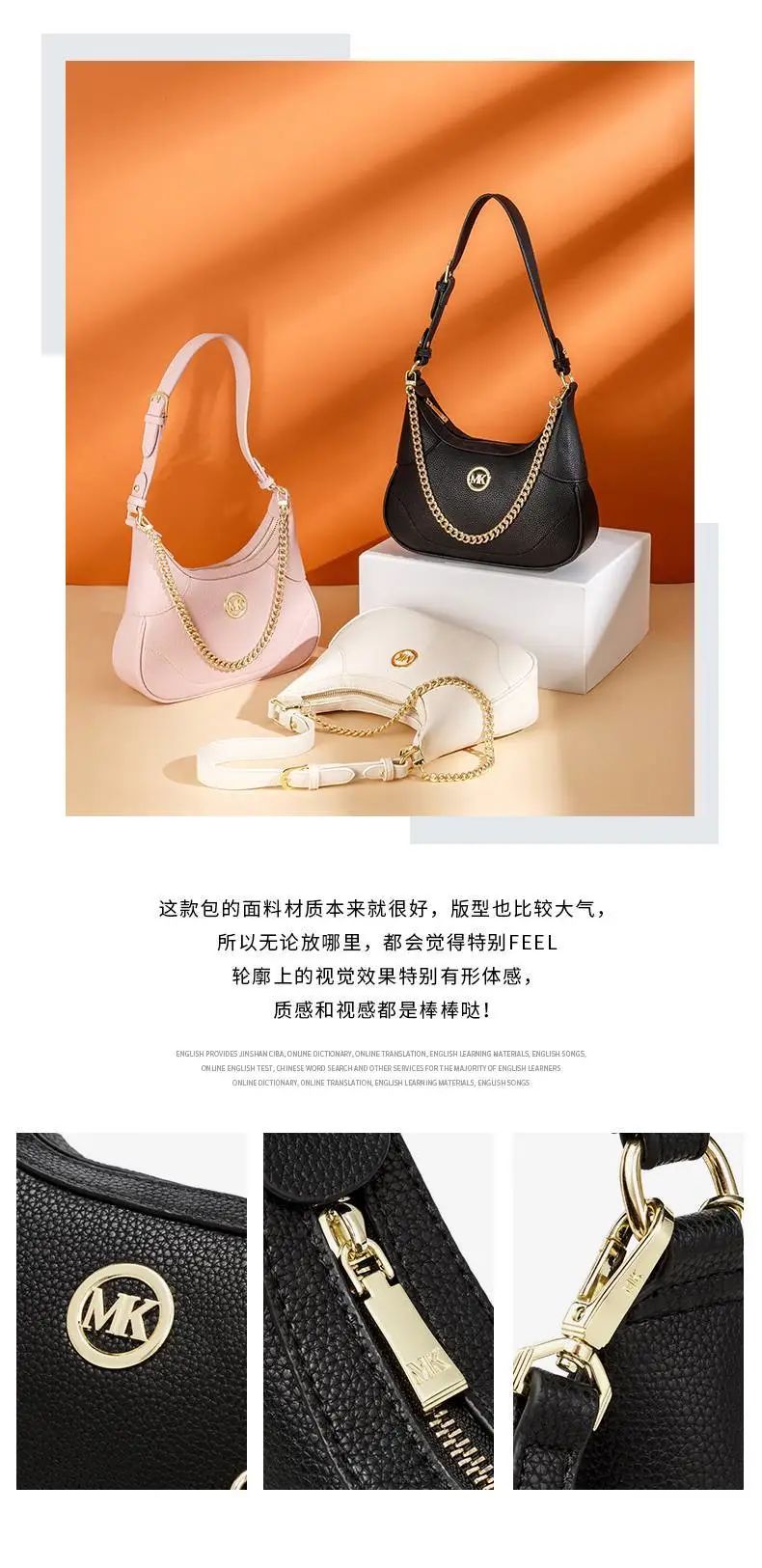 推品4 【品牌】:MICARELKMOR(英国MK) 【货号】:MK8979 【品名】:新月造型手提单肩斜挎包 【颜色】:黑色/白色/粉色 【材质】:PU/牛皮 【尺寸】:26*7*23cm 【风格】:极简,复古 【款式】:单肩/手提/斜挎