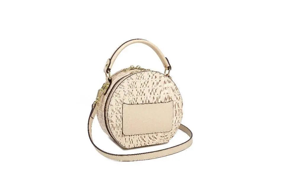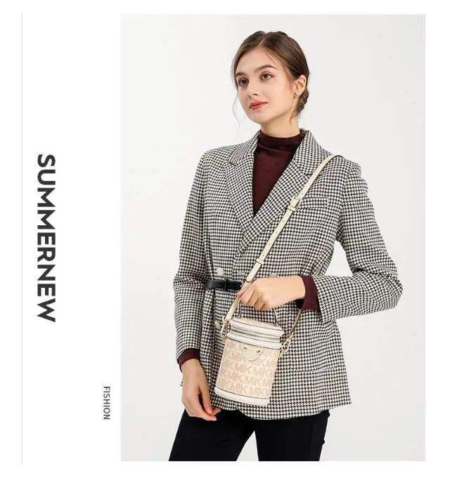 推品13 【品牌】:MICAREL KMOR(英国MK) 【货号】:MK8902 【品名】:单肩迷你水桶包 【颜色】:棕色/米白 【材质】:PVC/牛皮 【尺寸】:22cm*12*19 【肩带】:可拆卸 长肩带约110尺码/ 短肩带 60cm 【风格】:极简,复古 【款式】:单肩包/斜跨