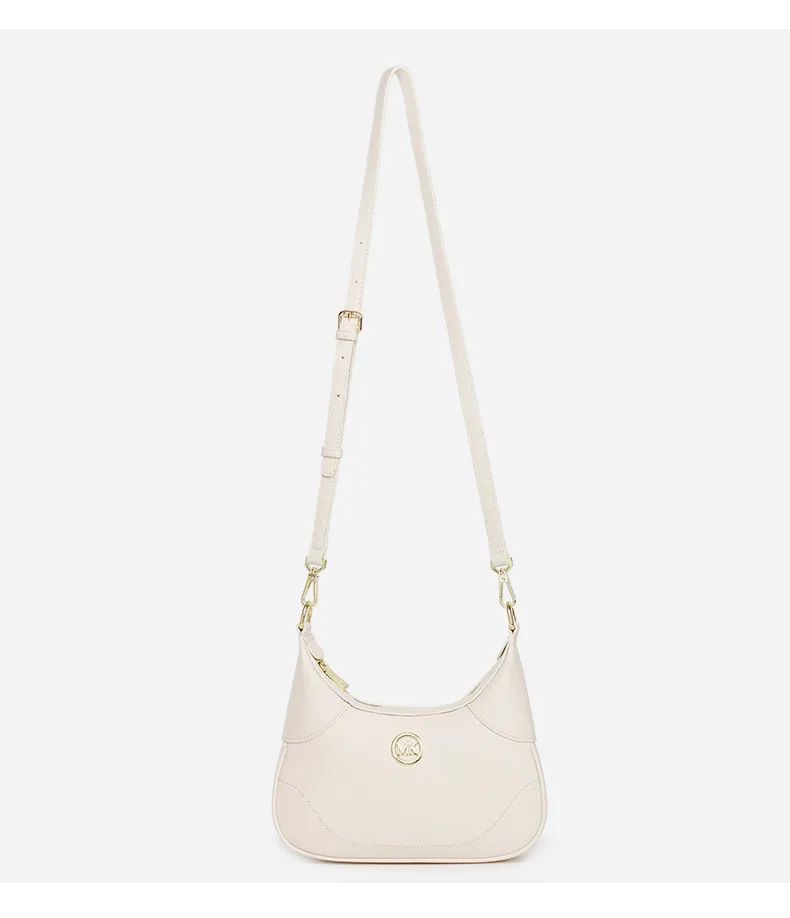 推品15 【品牌】:MICAREL KMOR(英国MK) 【货号】:MK8904 【品名】:质感单肩休闲腋下包 【颜色】:棕色/米白 【材质】:PVC/牛皮 【尺寸】:24cm*6.5*17 【肩带】: 可拆卸 长度约110cm/ 短肩带 60cm 【风格】:极简,复古 【款式】:单肩包/斜跨