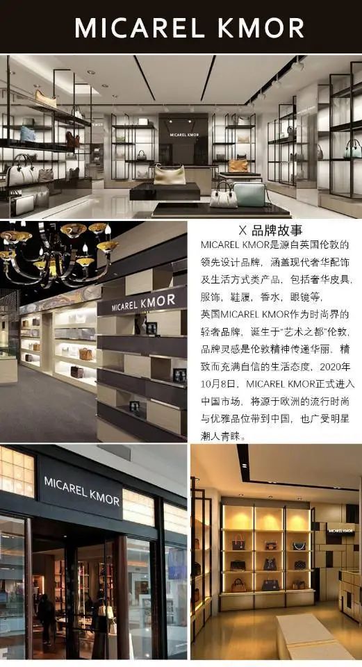 MICARELKMOR是源自英国伦敦的领先设计品牌,涵盖现代奢华皮具,服饰,鞋履,香水,眼镜等。英国MICARELKMOR作为时尚界的轻奢品牌,诞生于"艺术之都“伦敦,品牌灵感椒伦敦精神传递华丽,精致而充满自信胡生活态度,2020年10月8日,MICARELKMOR正式进入中国市场,将源于欧洲胡流行时尚与优雅品位带到中国,也广受明星潮人青睐。
