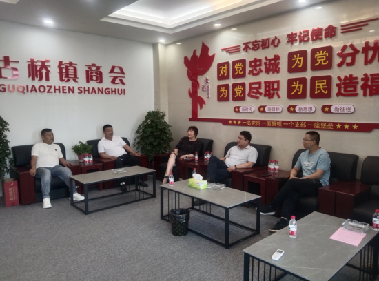 8月16日下午,市工商联党组书记许洁一行到古桥镇商会调研指导工作。镇党委副书记、镇长李铎,副镇长刘杰等陪同。