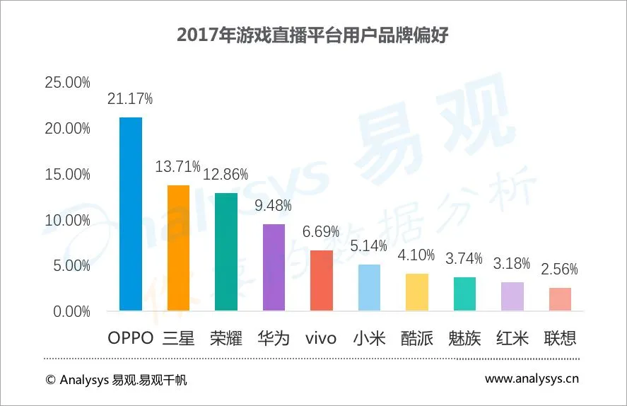 ▌游戏直播平台用户偏爱oppo手机,电竞文化城市排名靠前