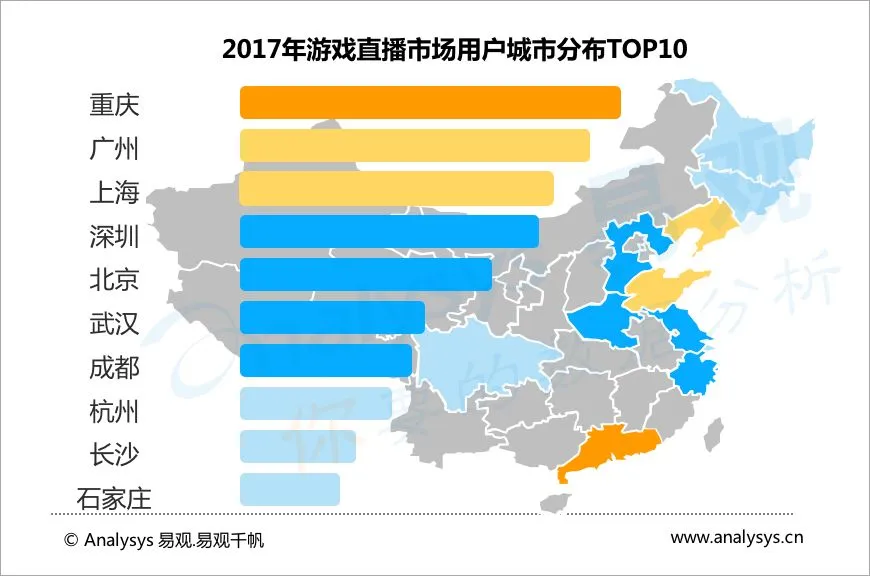成都、杭州、重庆都诞生过非常著名的电竞俱乐部,2017年9月OMG,LGD,SHAKE三支英雄联盟俱乐部选择重庆、成都、杭州作为主场,也是看重这三个城市的巨大粉丝潜力。 斗鱼直播作为武汉最大的互联网公司受到当地政府的扶持,整体直播市场氛围较为浓厚。