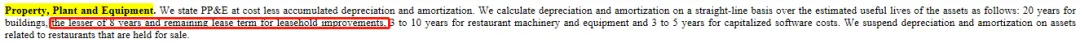 对于装修费用,企业普遍采用直线法摊销,预计残值为0,折旧年限各家不同。但对于装修费用高达数十亿的餐饮巨头来说,只要稍微改变一下摊销年限,能多出上亿利润。