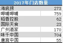 在门店数量上,前三分别是呷哺呷哺、味千、海底捞。