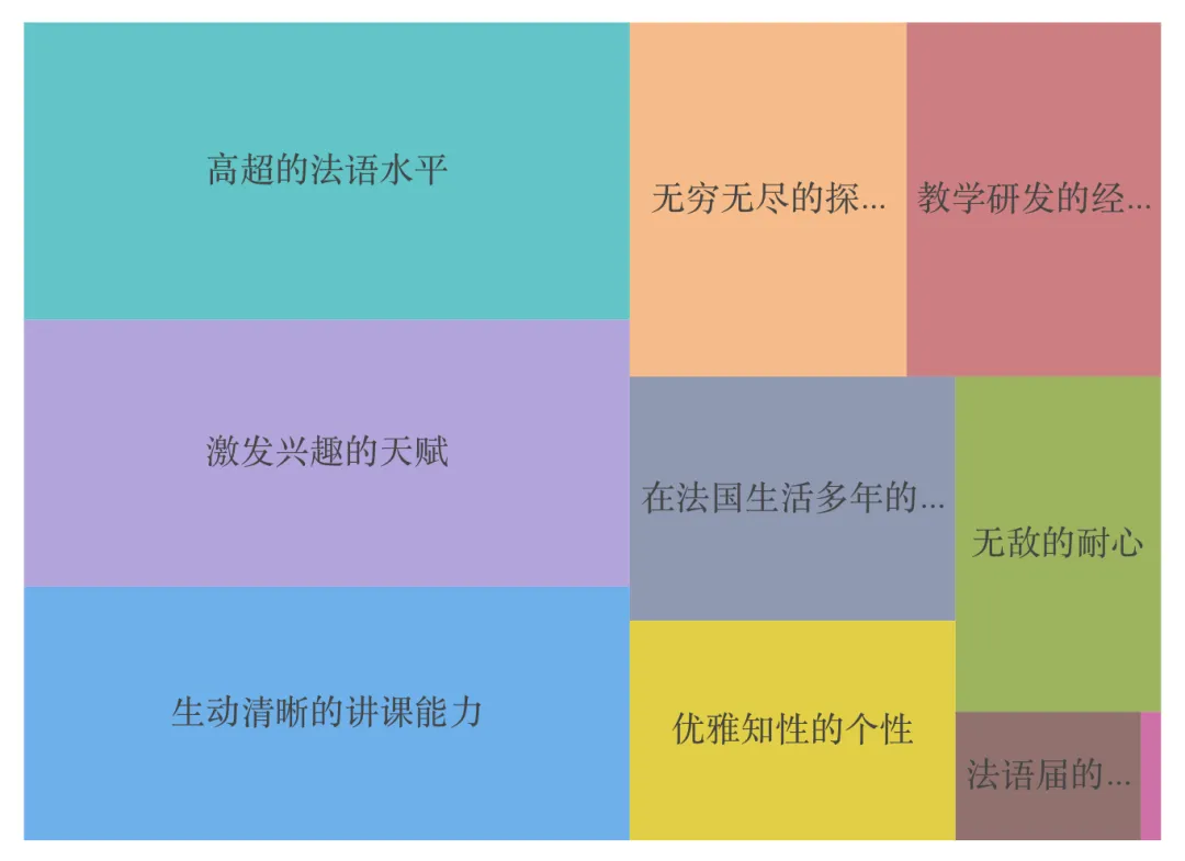 除此之外, “兴趣”、“文化” 是法语教师们不断提到的关键词。