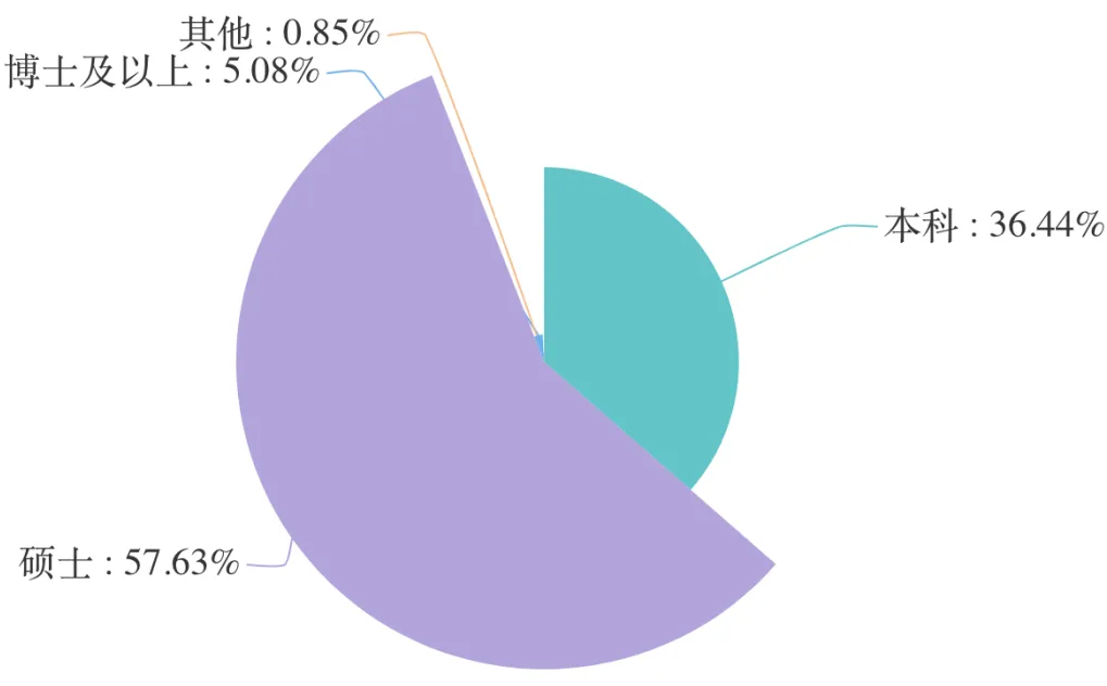 拥有硕士及以上学历人数比例是62%。