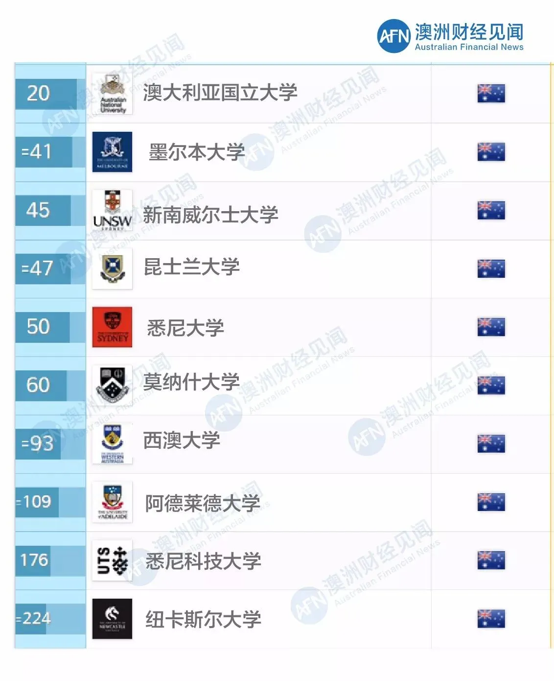 新一次QS Top Universities排名显示,澳洲最著名的八大依旧排名稳健,其他诸如麦考瑞、悉尼科技大学、格里菲斯大学等,也都在其学科领域获得了很好的成绩。这代表澳大利亚大学整体水平在世界获得高度认可,因此留学生群体也在不断扩充。