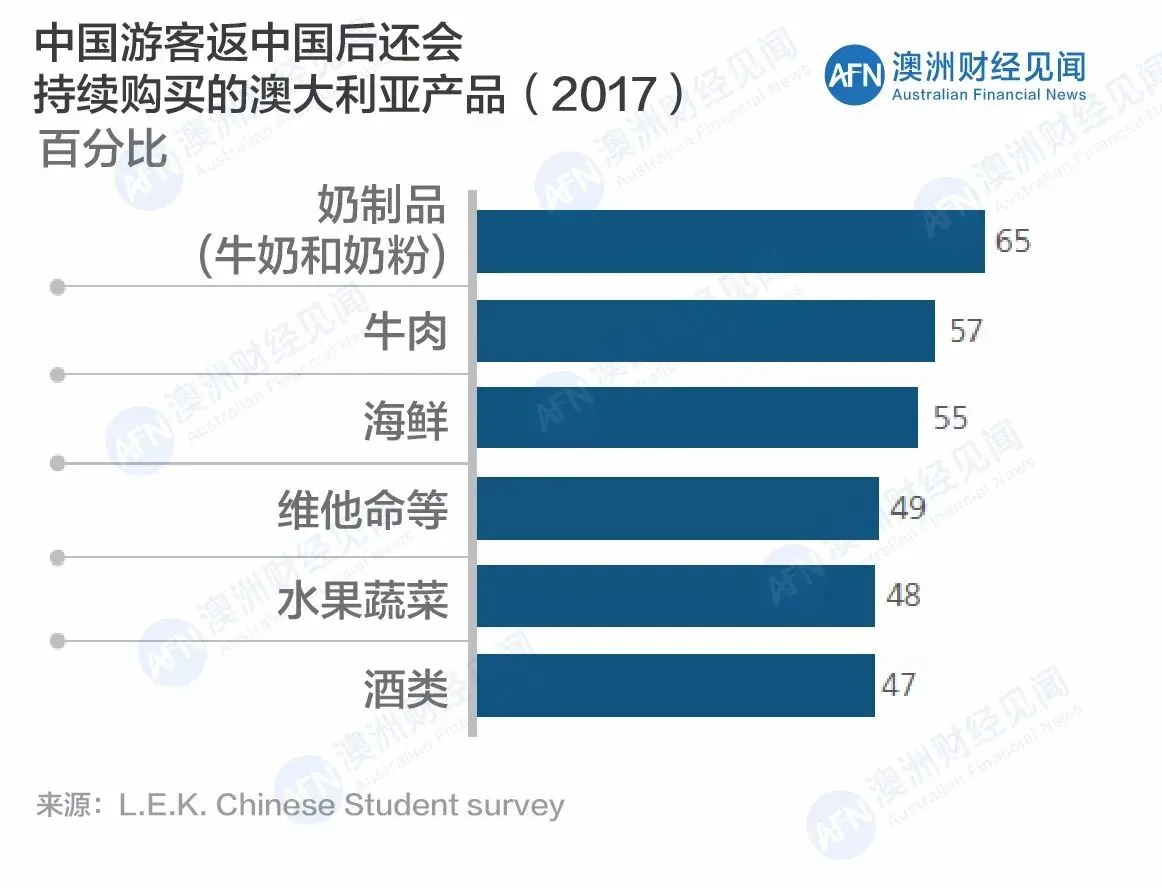 数据显示,目前澳大利亚的纯天然制品更加吸引中国消费者,比如奶粉、牛肉、海鲜、水果、蔬菜和维他命。他们甚至在回到中国之后继续购买这些产品。因此,对商家来说,招募普通话服务人员、宣传澳大利亚特色产品和开拓中国销售渠道迫在眉睫。