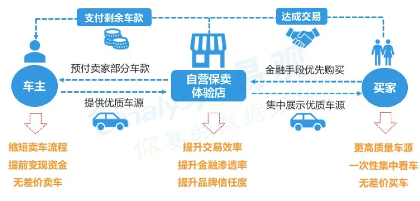 保卖模式是二手车C2C平台重点发展的商业模式,保卖模式一方面继承了C2C交易不赚差价的优势,另一方面将优质车源集中并将交易场景转移到线下保卖门店。保卖模式让卖家能提前变现资产,同时大幅提升了买家的看车体验,从而显著的提升了成交率。同时由于保卖车辆性价比高,平台可以优先以融资租赁方式来进行售卖,因此金融渗透率大幅提升,平台获得了重要的额外利润来源。