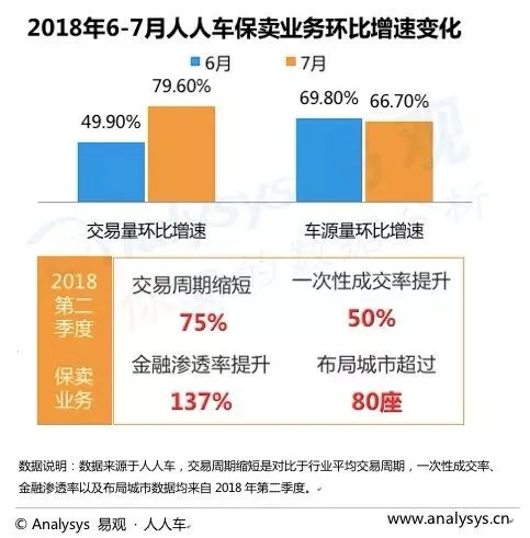 人人车平台在2018年大力推进保卖业务的发展,业务量占比实现了高速增长,从而带动整体平台交易效率、金融渗透率的显著提升。