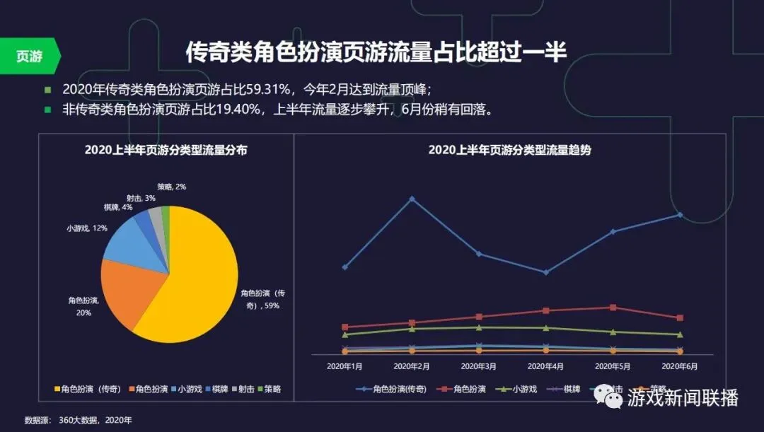 页游方面,2020年上半年角色扮演类页游(包括传奇题材)占比稳定在77%-80%左右,其中,传奇类角色扮演页游占比59.31%,非传奇类角色扮演页游占比19.40%;小游戏占比维持在10%-12%,棋牌、策略及射击类页游占比较2019年稍有下降。