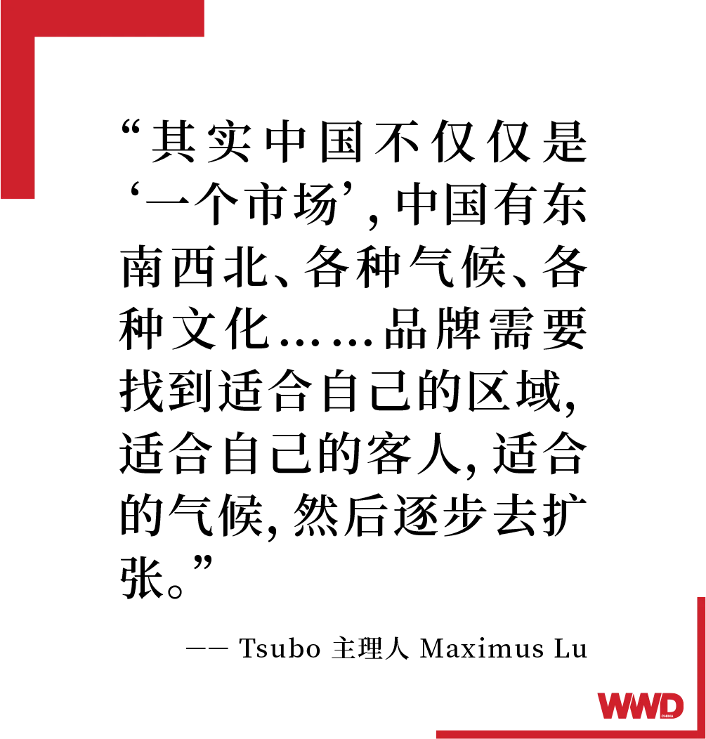 高端生活方式、时尚鞋履品牌 Tsubo 主理人 Maximus Lu 向 WWD 中文版表示,中国是全世界供应链体系最完整的一个国家,在这里,如果有好的设计、好的销售体系,并且完全可以在本土完成生产。从设计到生产,再到销售,能在同一个国家拥有非常完整、稳定的供应链体系,是一种不可替代的优势。