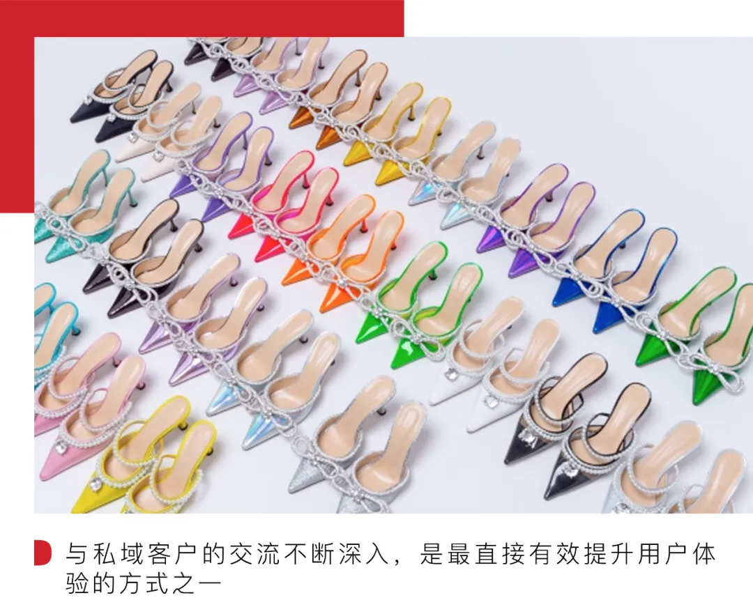 当我们再次将视线拉回到“复苏”这一备受瞩目关键词,如何通过交流沟通、共鸣去提振消费者的信心,必然是最根本的问题,Arthur 指出,私域流量,这也是品牌无比宝贵的资产 —— 对于鞋履品牌,其实在线上面临的挑战也很多,包括尺码,鞋型等种种因素,都会增加客户的“顾虑”。