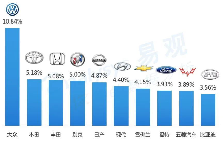 二手车买家对于国产品牌偏好较分散,美系三巨头份额略有下降