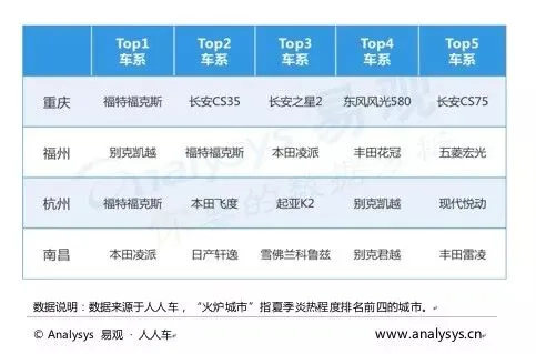 2018年6月二手车电商平台四大“火炉城市”最受欢迎车系