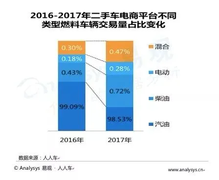 在不同燃料的车型的交易中,消费者仍然以购买燃油车为主。电动和混动类由于技术更新快、缺乏估值标准等原因导致保值率较低,市场认可度仍然偏低,但相比2016年则略有提高。预计未来随着技术的不断成熟,新能源类二手车会逐渐得到更多二手车消费者的认可和接受。