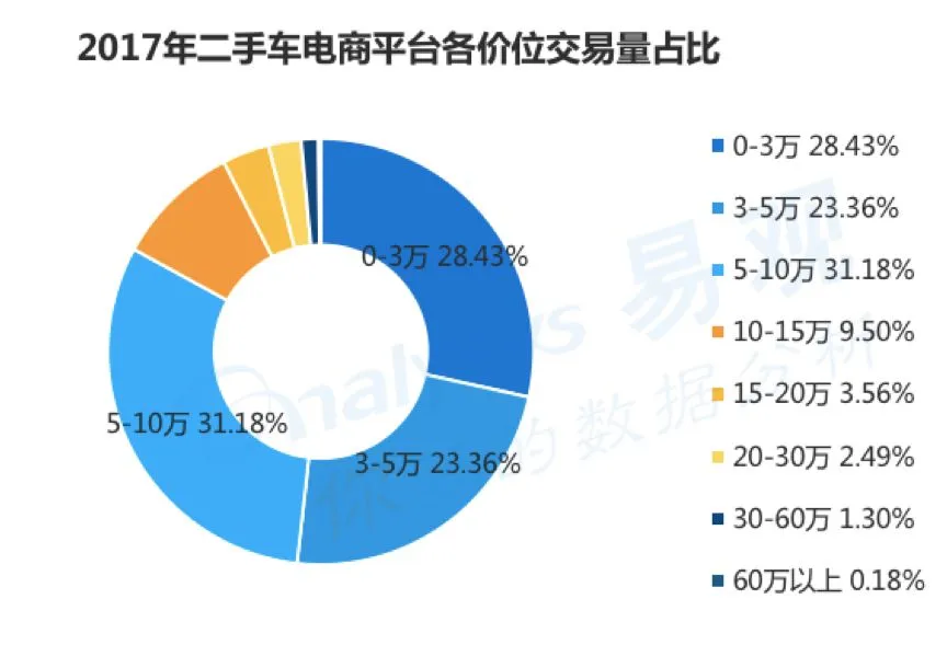 根据Analysys易观万像数据监测显示,中国二手车电商移动端用户的地域分布以一、二线城市为主,占比超过66% 。
