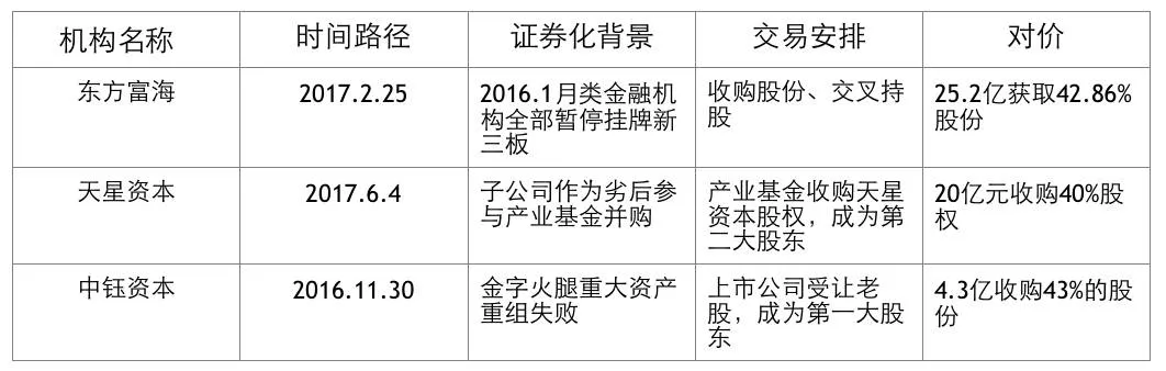 我们选取公开披露的三个并购案例——金字火腿并购中钰资本、中科新材收购天星资本、宝新能源入股东方富海,对其交易结构、并购估值、业绩承诺、合规操作、实际控制人等多角度进行探讨。