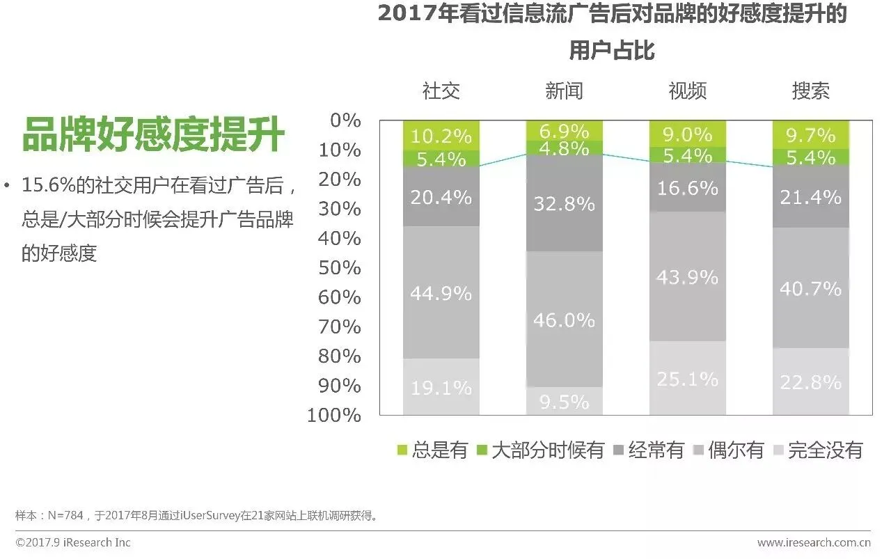 相对于新闻类,社交媒体的信息流广告更易提升品牌好感度