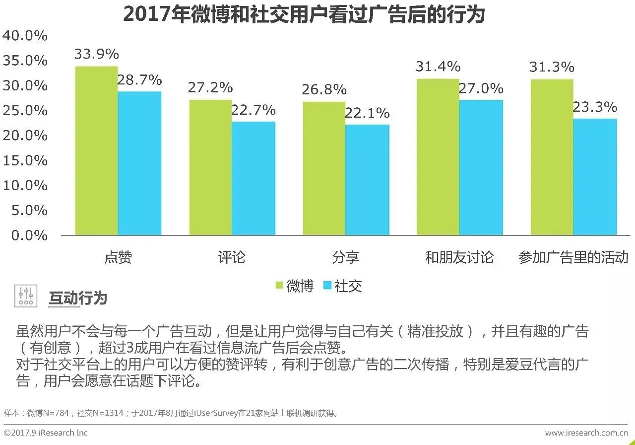 微博用户对其平台上的广告喜爱度略高于行业水平