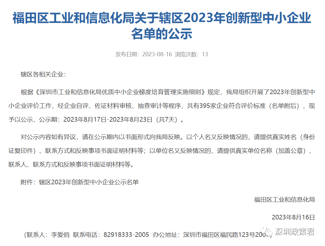 | 2023年创新型中小企业公示名单 | |