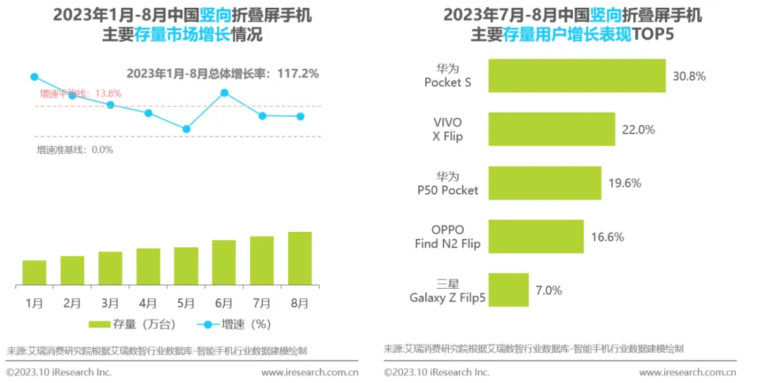 竖向折叠屏存量市场高速增长, 华为主力机型持续畅销