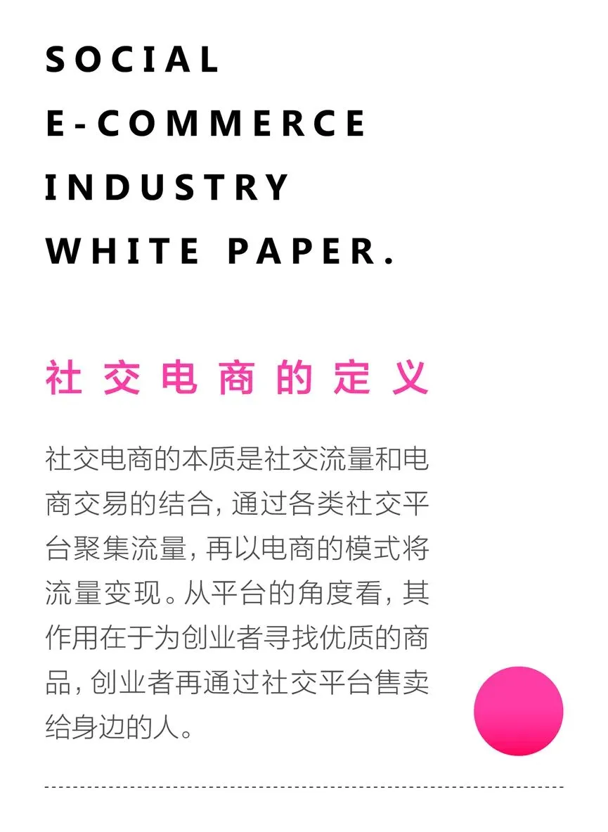 整个社交电商产业正在经历从粗放式生长到精细化运营的转型。《关于促进平台经济规范健康发展的指导意见》的印发,为营造社交电商的适宜发展环境提供了指导。。随着“互联网+创业创新”的推进,5G等新一代信息基础设施加快建设,社交电商产业迎来了新的发展机遇。