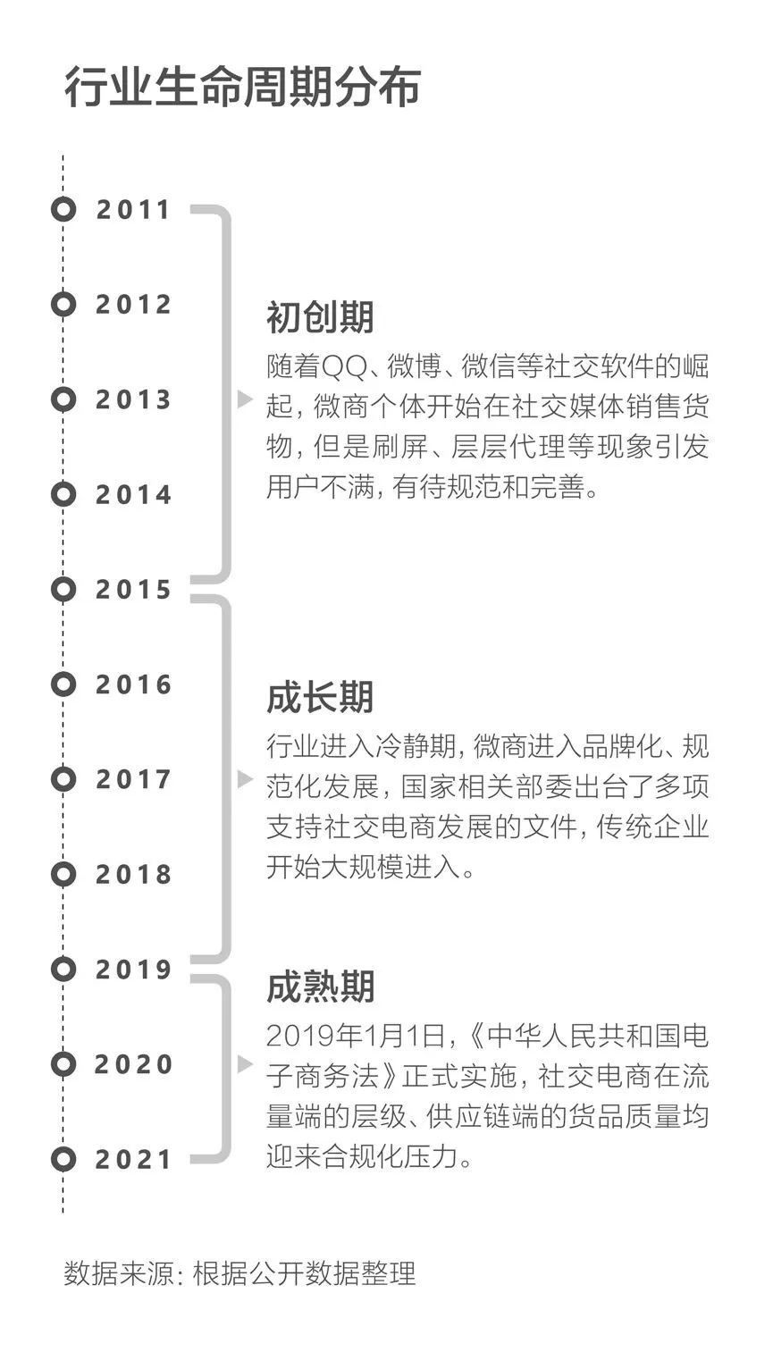 社交电商最早起源于个人微商,随着QQ、微信等社交软件用户数量的增加,部分小众美妆品牌以此作为分销渠道,进行产品销售。随后,“微商”概念兴起,一批个人微商从业者开始融入社交分销平台成为店主,凭借分销及带货能力迅猛扩张。2016年起,多家社交电商平台受到资本青睐,各类垂直型内容平台崛起。