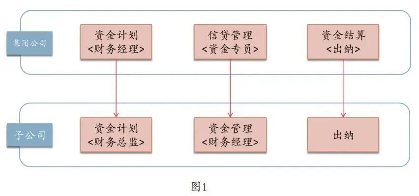 为强化集团管控,在横向管理不放松的同时,加强了资金条线的垂直管理,改进了管理方式。建立集团和子公司层面资金计划、信贷管理、资金结算的职能垂直对接关系,指定集团公司财务经理对口子公司财务总监负责资金计划工作,指定集团公司资金专员对口子公司财务经理负责信贷和日常资金管理工作,指定集团出纳对口子公司出纳负责资金结算工作。(如图1)