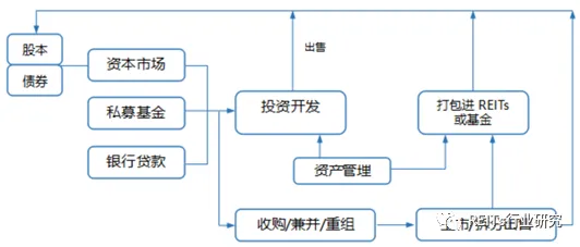 再看中国,房地产行业背后的金主,首先是以银行为首的金融机构(以债券融资为主,分享小部分利润),其次是地产企业或企业主的自有资金(股权投资,以高杠杆高周转高毛利的模式攫取大部分利润)。因此我们可以达成共识——地产转型(无论是轻资产化还是多元化)的背后实质,是行业的真正金融化和大众资产管理时代的到来,是民众福利大发展的一次契机。