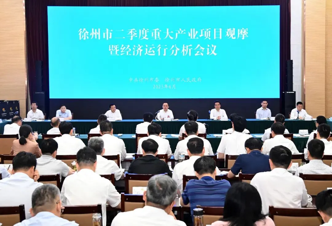 6月25日,全市二季度重大产业项目观摩暨经济运行分析会举行,深入学习贯彻习近平总书记在参加全国人代会江苏代表团审议时的重要讲话精神,分析经济运行新情况新变化,检验项目建设新进展新成效,安排部署当前重点工作,动员大家进一步坚定决心、提振信心,只争朝夕、紧抓快干,持续推动经济运行率先整体好转,为高质量建设淮海经济区中心城市提供坚实支撑。市委书记宋乐伟出席并讲话,市委副书记、市长王剑锋点评分析重大产业项目建设和经济运行情况,市人大常委会主任王安顺,市政协主席王强等参加活动。