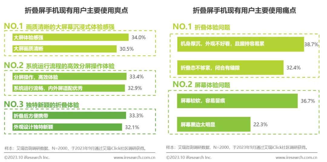 用户的爽点与痛点主要聚焦于屏幕和折叠