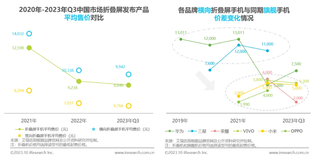 折叠机价格逐步亲民化,其与品牌旗舰机间的价差逐渐缩小