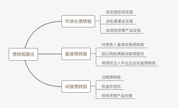 相较于1999年实施的政策性债转股主要依赖四大AMC进行的直接债转股而言,本轮债转股的实施路径明显呈现出多样化的色彩,在各类投资工具及实施主体的参与下,对于拟实施债转股的企业而言,应需要充分探讨各类方式的适用性,并因地制宜的选择具体实施方案。