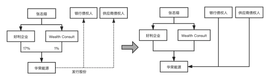 此种操作方式近年来已较为少见,根据公开信息,华荣能源(股份代码:01101)在2016年通过向22家债权银行及供应商发行股份的方式完成了债务清偿,有关交易图示见下述: