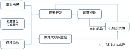 新加坡主权基金淡马锡旗下的凯德集团在业内也是大名鼎鼎。凯德采用的模式,也是将投资开发或收购的项目,打包装入私募基金或者信托基金,自己持有该基金部分股权,另一部分股权则由诸如养老基金、保险基金等机构投资者持有;待项目运营稳定并实现资产增值后,REITs的方式退出,从而进行循环投资。