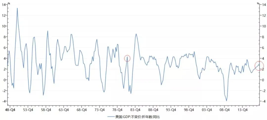 我拿两个历史数据给大家看。下图是美国GDP增长率。