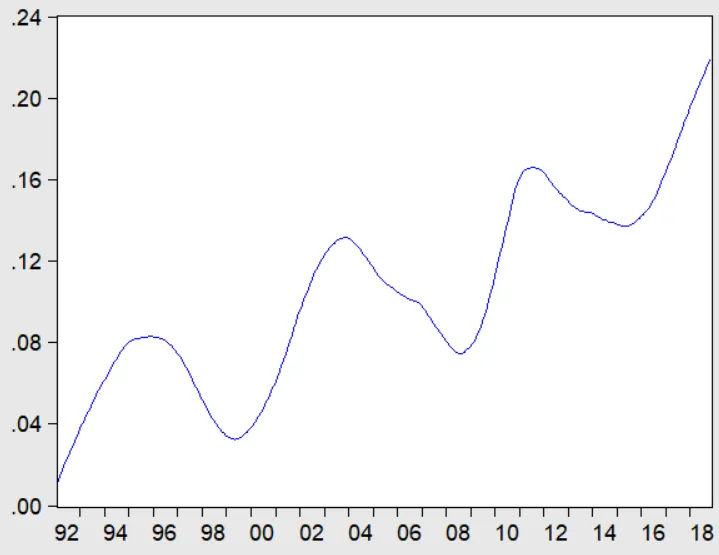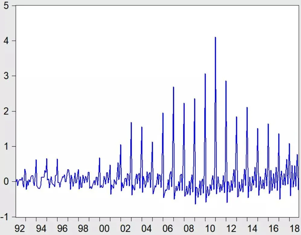上边两张图是赤字率数据,因为这个月度数据波动十分大,你直接拿第一张的数据看,简直就是一团糟,啥都看不出来,所以按老规矩,我给他做了平滑处理。