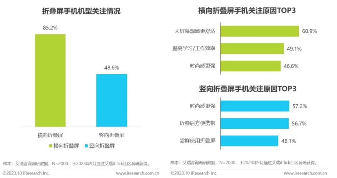 更多折叠屏用户关注具有更佳大屏观感的横折机型