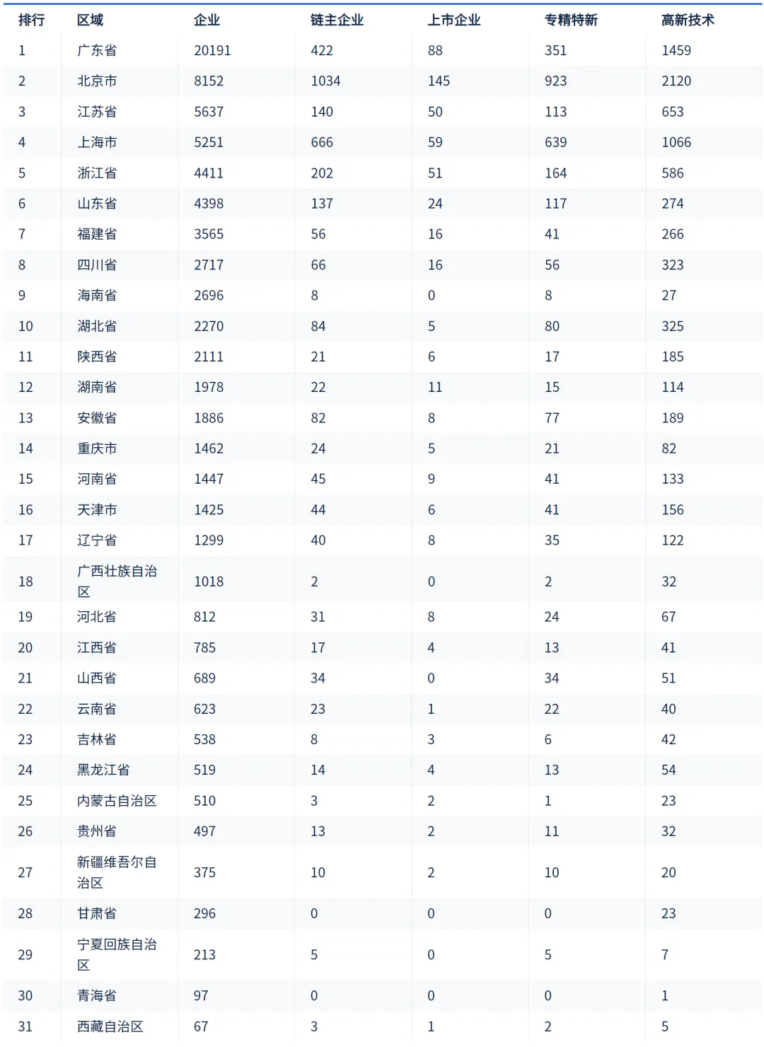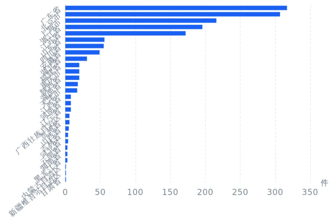 区域分布:广东、北京、江苏企业数量位居前三