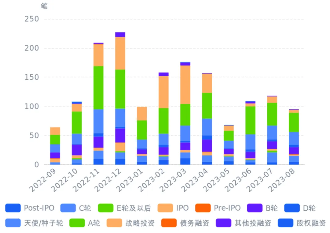 图11 2022年09月至2023年08月全国大模型企业融资交易轮次分布