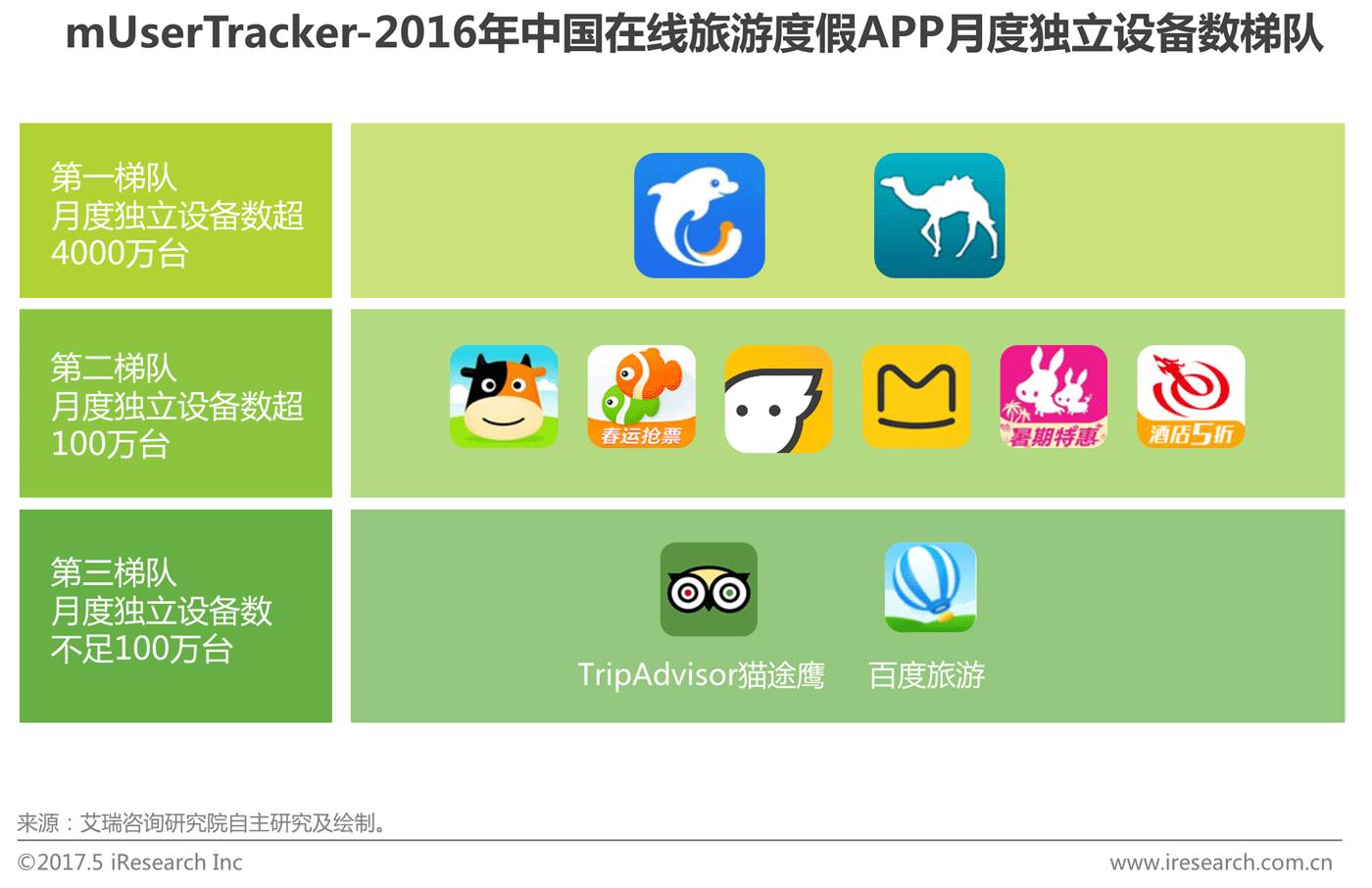 艾瑞监测数据显示, 2016年在线旅游行业移动端月度覆盖设备数整体稳定在1.6亿台上下。其中,前11个月波动幅度较小,12月受春运影响,月度覆盖设备数迅速增长至2.2亿台,增长率达25.8%。艾瑞分析认为,移动互联网目前已进入成熟阶段,易转化人群规模已经很小,因此在线旅游行业移动端流量趋向稳定。